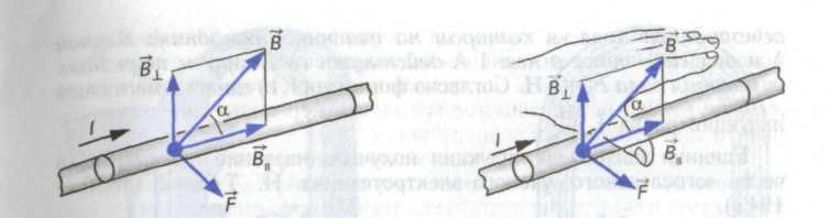 Если магнитное поле является однородным и проводник длиной l целиком находится в нем, то формула силы Ампера принимает вид F = IΔlBsinα.