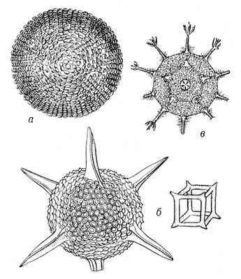 Сферическая ( лат. sphaera – шар) симметрия имеет место только у протистов, радиолярий и солнечников, тело которых сферической формы, а его части распределены вокруг центра сферы или отходят от нее. У таких организмов нет ни передней, ни задней, ни боковых частей тела, любая плоскость, проведенная через центр, разделит животное на одинаковые половинки. Сферический тип симметрии возможен только у очень мелких животных, имеющих простое внутреннее строение. Так как масса внутреннего содержимого сферы тесно соотносится с площадью ее поверхности, то с увеличением размеров и сложности и сложности сфера становится слишком большой для эффективного функционирования организма.