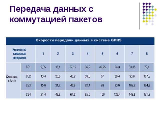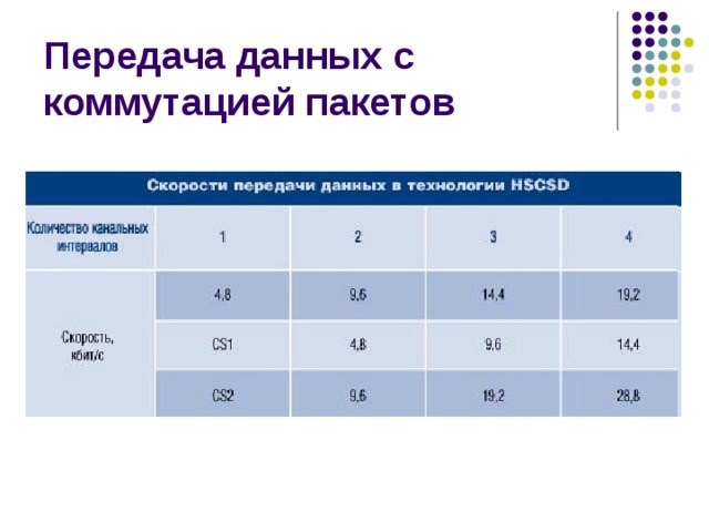 - Увеличение скорости передачи данных, как в HSCSD и GPRS достигается за счет использования нескольких слотов для передачи и приема