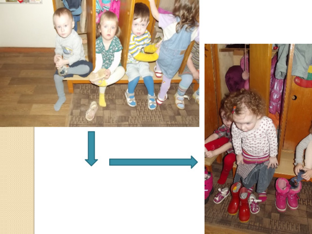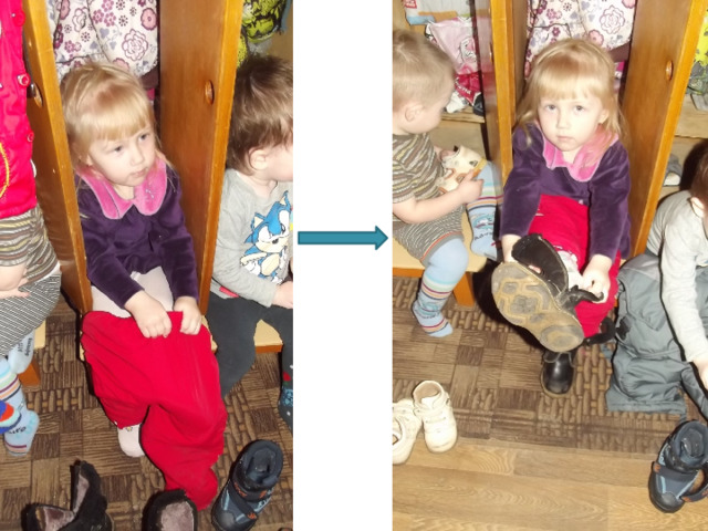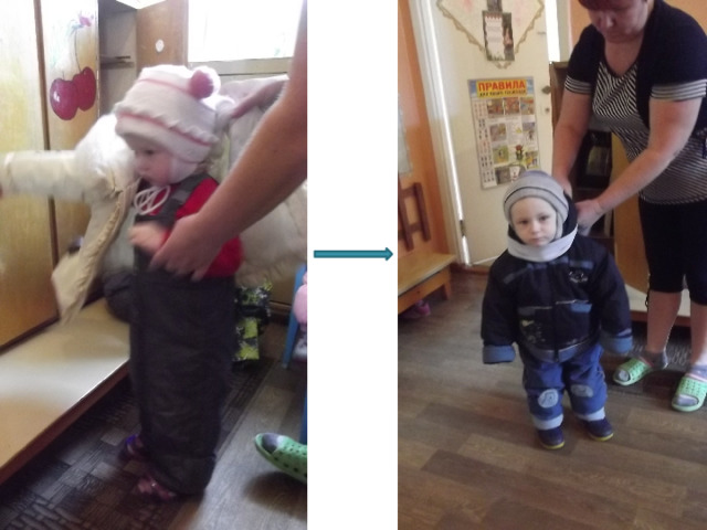 - При небольшой помощи взрослого должен снимать одежду, обувь (расстегивать пуговицы спереди, застежки на липучках;