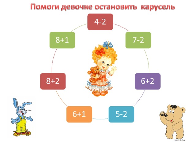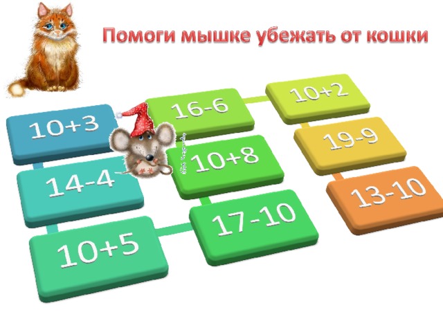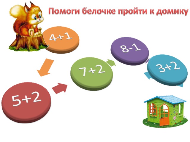Устный счёт в пределах 20 проводится в игровых упражнениях "Помоги белочке", " Помоги мышке" и др.