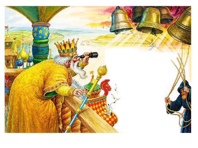 - Ой вы гой-еси, люди добрые! Поклоняюсь вам я до пояса. И спасибо вам, что спасли народ. Что спасли, друзья, землю русскую. Вы не просто сказки выручили, Душу вы спасли, душу русскую, Сердце русское, радость русскую. Пусть же призом вам да наградою Будет слава вечная. Самых умных и смелых духом Наградить, да по – царски. Царь Дадон.