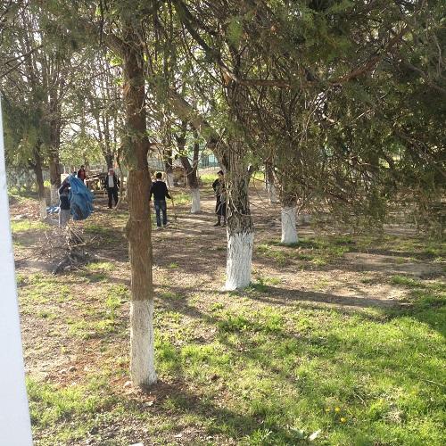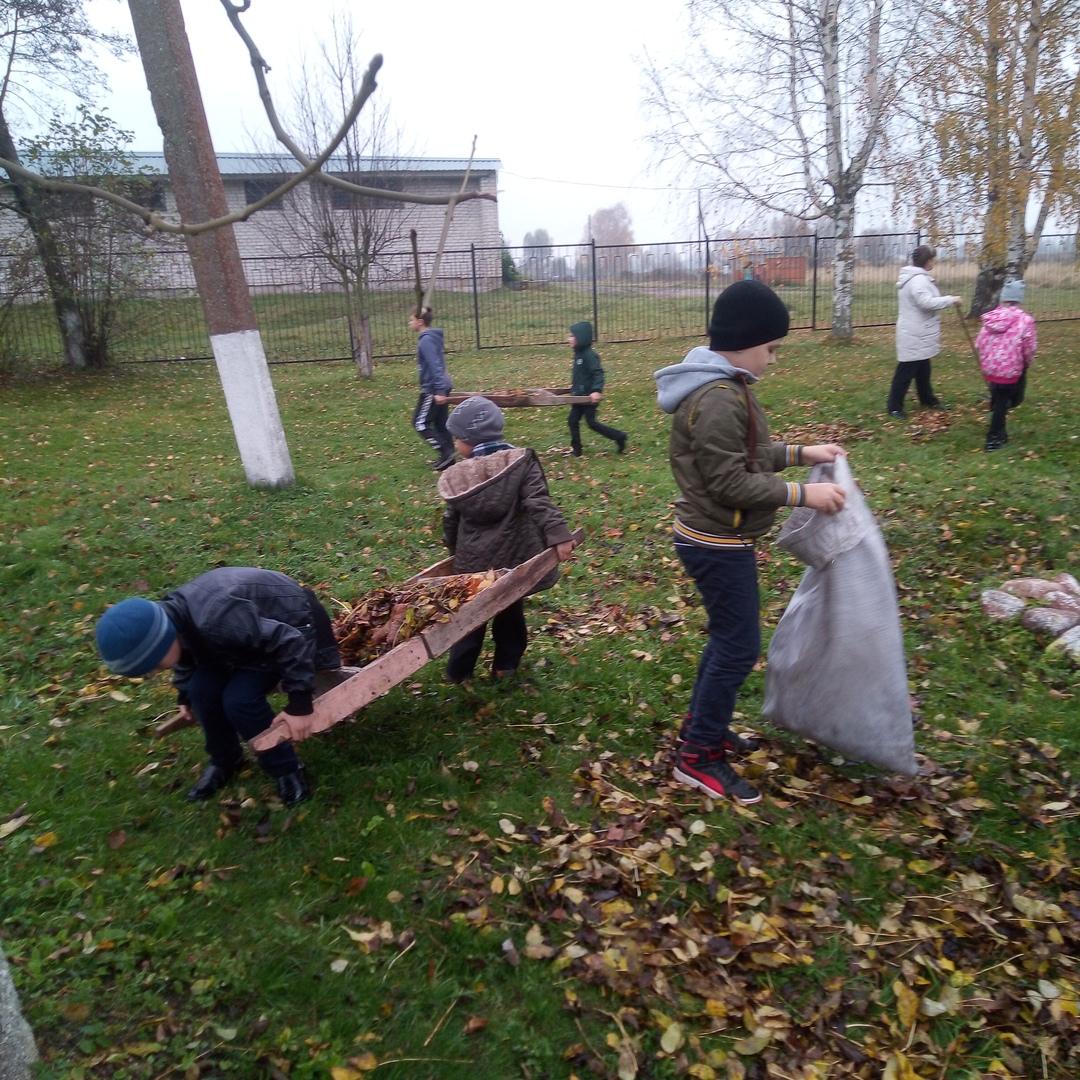 Уборка школьной территории (пластиковые пакеты для мусора)