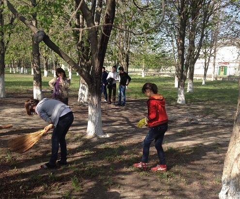 Очистка от мусора улиц села.