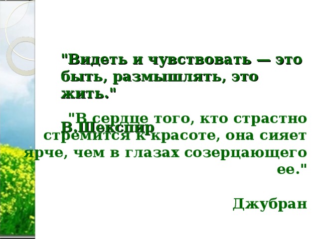 "Видеть и чувствовать — это быть, размышлять, это жить." В.Шекспир