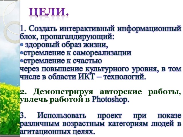 Это красочная, познавательная презентация для , ваполнена в PowerPoint, предназначена для демонстрации в старших классах как реклама здорового образа жизни!