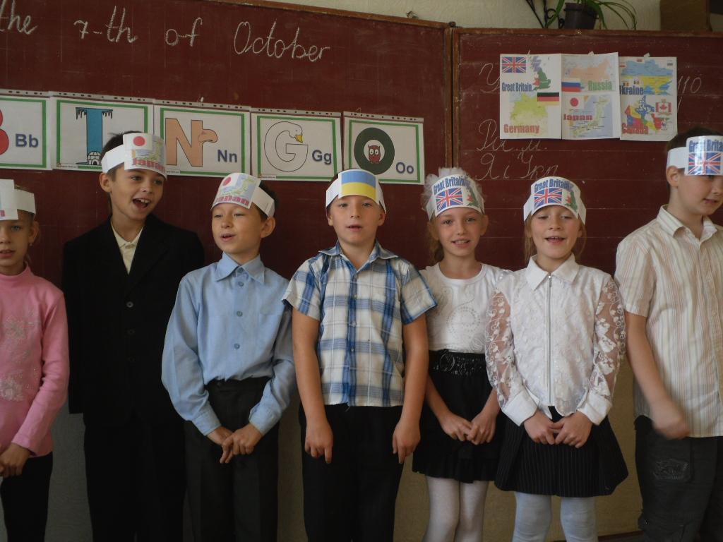 Aids: магнітофон, диск з англійськими піснями, роздатковий матеріал для групової роботи та роботи в парах, презентація, портфоліо.