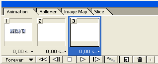 9. В нижней части окна ImageReady находится «раскадровка», на неё мы должны выложить меняющиеся через заданное время кадры, которые и будут составлять анимацию.