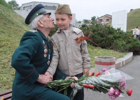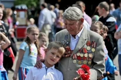 Выбрать выразительные фотографии ветеранов (2-3 шт.) и вставить по диагонали или в шахматном порядке.