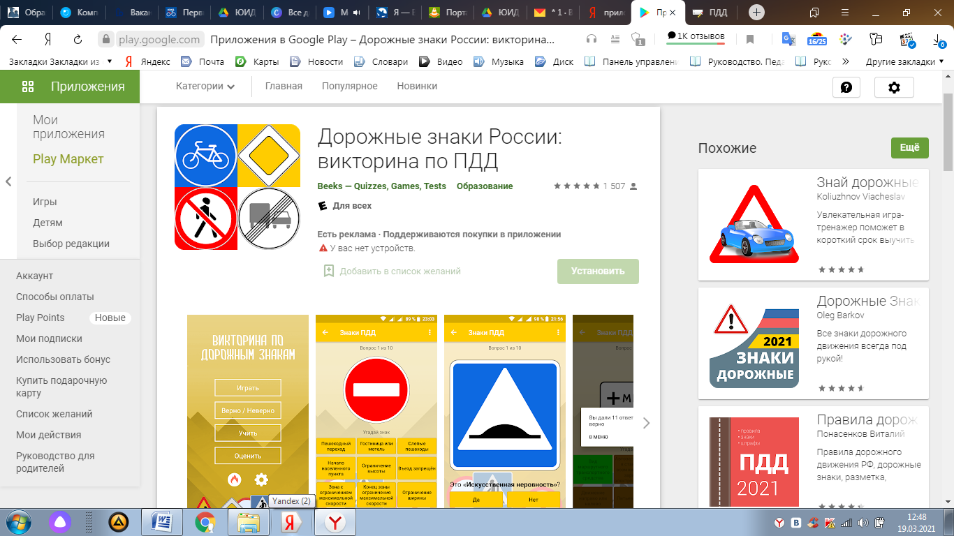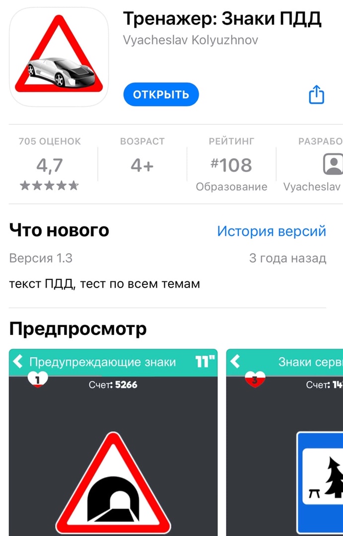 2.Приложение «Тренажер: Знаки ПДД» (для скачивания нужны: App Store, Play Market или Google Play)