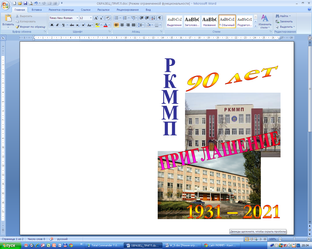 Задание 4. Создайте приглашение, состоящее из 4 страниц, согласно образца