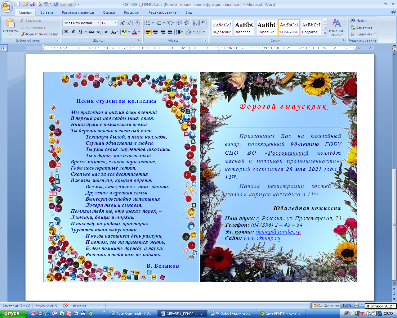 Создайте открытку состоящую из четырех страниц, применяя навыки форматирования