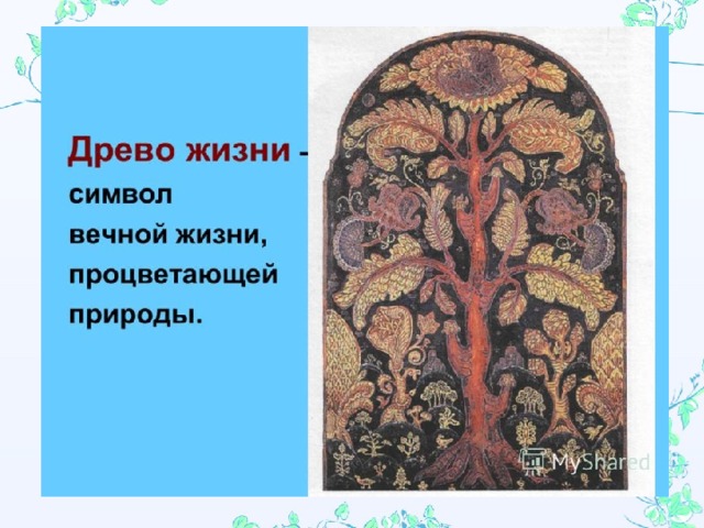 - Дерево – древо жизни. У славян символ благоустройства жизни и порядка, ось мира.