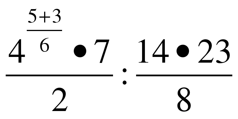 г) 4^(5 + 3)/6 * 7/2 * 8/14/23