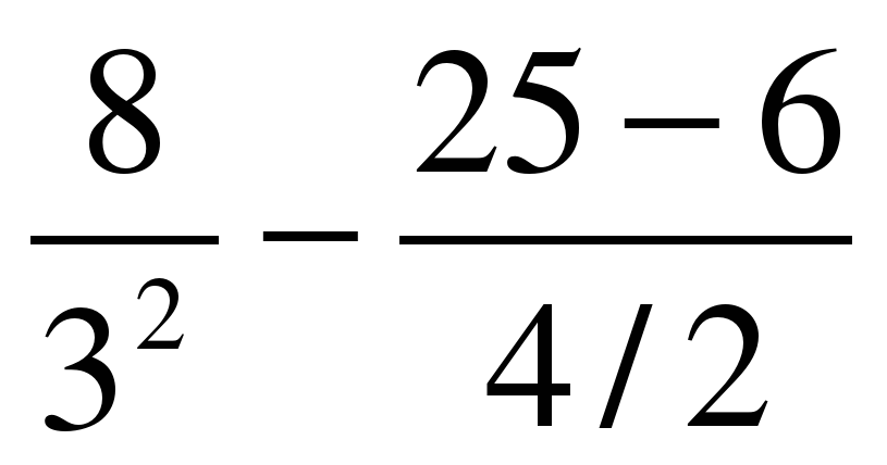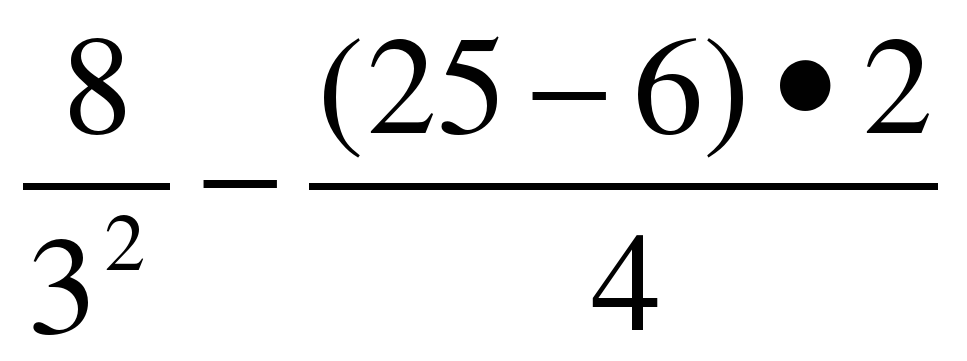 11) В электронной таблице записано арифметическое выражение 8/3^2 - (25 - 6)*2/4 Выбрать математическую запись, соответствующую этому выражению