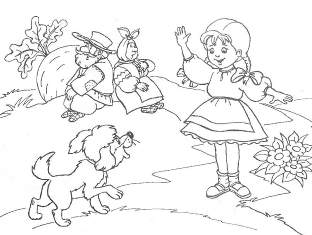 Кликнула Жучка кошку Машку. Машка за Жучку, Жучка за внучку, внучка за бабку, бабка за дедку, дедка за репку: тянут-потянут, вытянуть не могут.