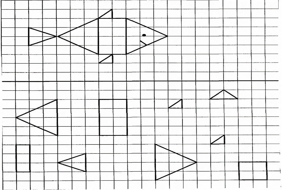 С 2. Закрась внизу только те геометрические фигуры, из которых состоит рыбка.