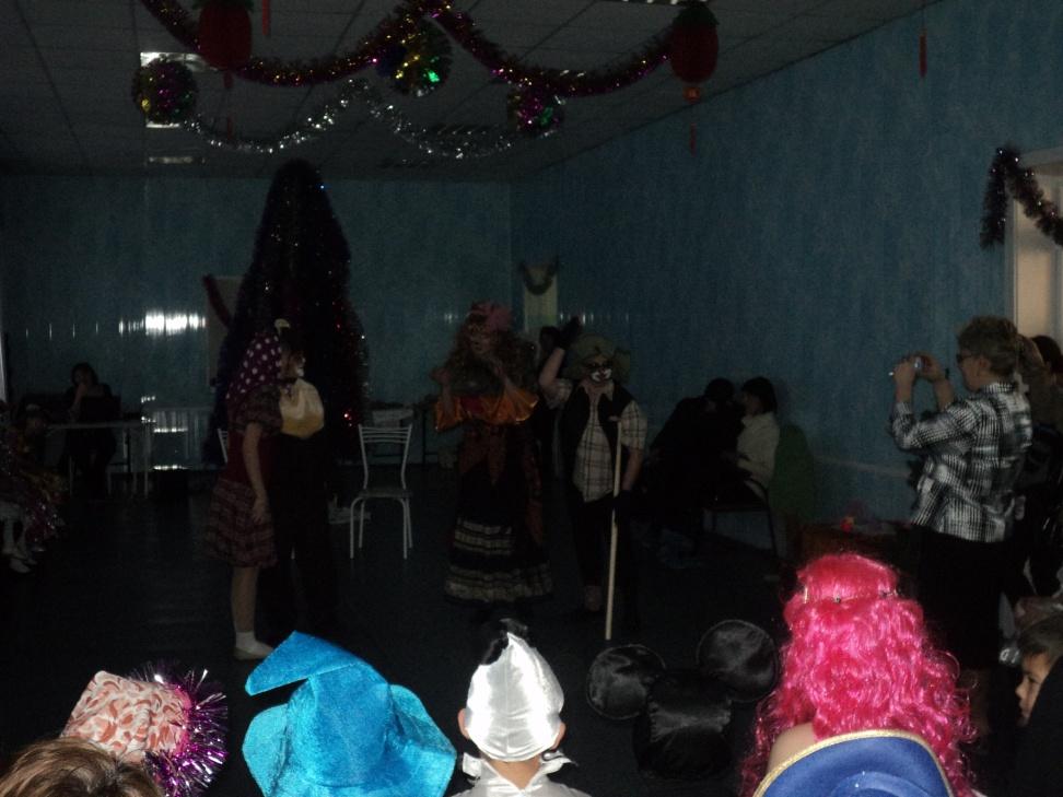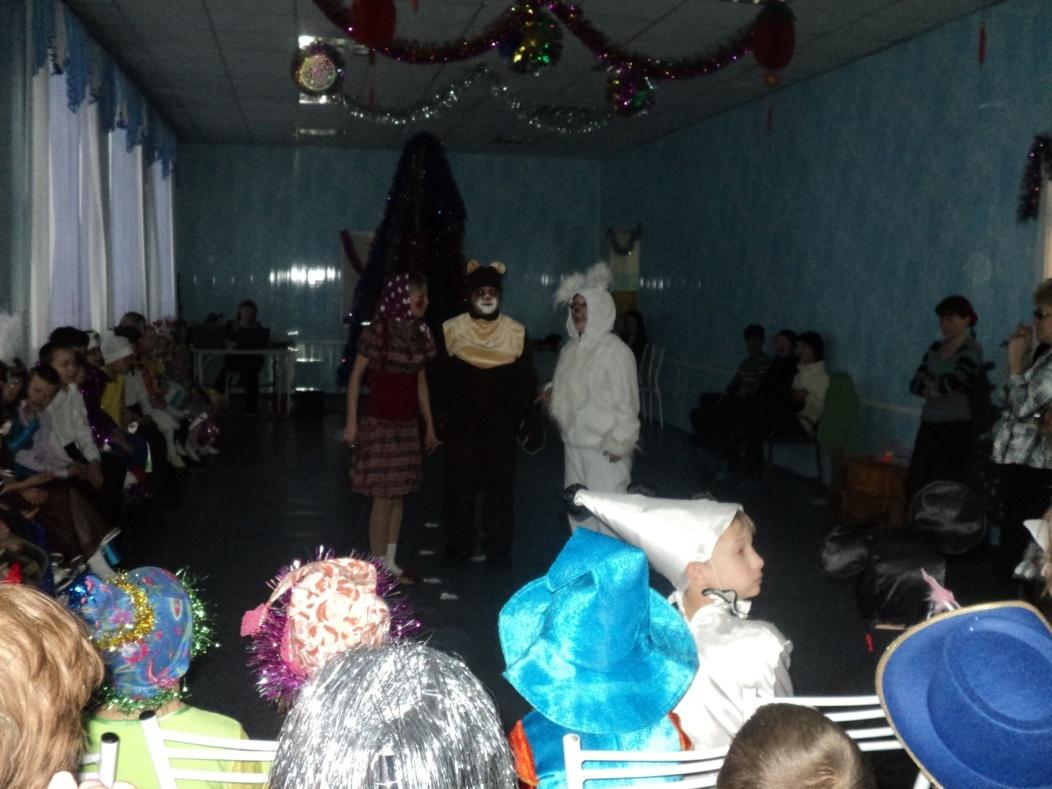 (во время игры Лиса А. и Кот Б. незаметно уносят мешок с подарками, после игры Чертята тоже незаметно из зала убегают)