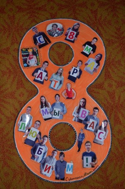 | | | настроеньем. 12) Вахабов Ахмед. Спасибо, что уж столько лет Усталости не знаешь, Не ведая тоски и бед Меня ты согреваешь. Ты греешь лаской и теплом, Улыбкой, смехом, взглядом. Хочу сказать тебе одно: Спасибо, что ты рядом. 13) Серёжкин Сергей. Мамулечка, роднулечка, Моя ты красотулечка, Спешу тебя поздравить Я с праздником весны! Пусть в жизни все наладится, Морщинки пусть разгладятся, Здоровье пусть прибавится И сбудутся мечты! 14) Мартыненко Никита. Ты нежная и славная, Ты в нашем доме главная, За ласку и терпение тебя благодарю. А чем тебя порадовать, Не нужно мне отгадывать, Ты ценишь лишь внимание, Неважно, что дарю! 15) Озарнов Никита. Мама, с праздником тебя, С женским праздником, весенним! И сегодня от меня Принимай ты поздравленья! Счастья я тебе желаю, Будь здорова, не болей, Оставайся молодая, Никогда ты не старей. 16) Фёдоров Юрий. Позабудь про все заботы Хоть сегодня, на денёк, Про готовку и работу, Полежи, попей чаёк. 17) Кудрявцева Анастасия. О проблемах ты не думай, Лучше платья перемерь, Туфли, сапоги, костюмы, Это здорово! поверь! 18) Кочергин Никита. Поздравляю я от сердца И, конечно, от души. Помогаешь мне согреться, Можешь от всего спасти. Долгих лет тебе, конечно, Чтоб здоровья через край. Я же постараюсь честно Обеспечить тебе Рай. 8. Рябова Г. А. : Я тоже хочу присоединиться к поздравлениям ваших детей, которые прозвучали здесь. Желаю мира и любви, Желаю молодости вечной! Пусть будут радости длинны, А огорченья быстротечны, Пусть будет все, как В доброй сказке: Удачи, тысячи цветов, Здоровье, смех, улыбки, счастье, Дела, достойные стихов. 9. МАША Всем известно, что девочки, девушки и женщины очень любят гадать на ромашке:  (Выходят мамы, у которых прикреплён лепесток ромашки (задание Спеть песню про маму) 10. Рябова Г. А.: А в такой праздничный день наверняка у вас в доме, дорогие наши мамы, появится много помощников, которые захотят хотя бы раз в году сделать вам приятное. Надеюсь, что это будет так… 10. Сценка «Помощник». 11. Егорова Анастасия. А теперь отгадайте важные слова! - Это очень холодное и гладкое. Когда становится тепло, она превращается из большой в маленькую. Бывает равной формы, но чаще всего похоже на морковку. Висит вниз головой. Когда весна наступает, она тает. Что это? (Сосулька). - Это дядя. Он сильный, умеет готовить, может водить машину, мотоцикл. Он никого не боится, никогда не плачет. Он любит одну женщину, у него бывают дети. Он хороший, добрый, заботливый. Обещал маму всю жизнь на руках носить. Кто это? (Муж). - Самый дорогой для вас человек на Земле. Кто это? (Мама). - Этим качеством обладает каждая любящая мама. Каким? | | |