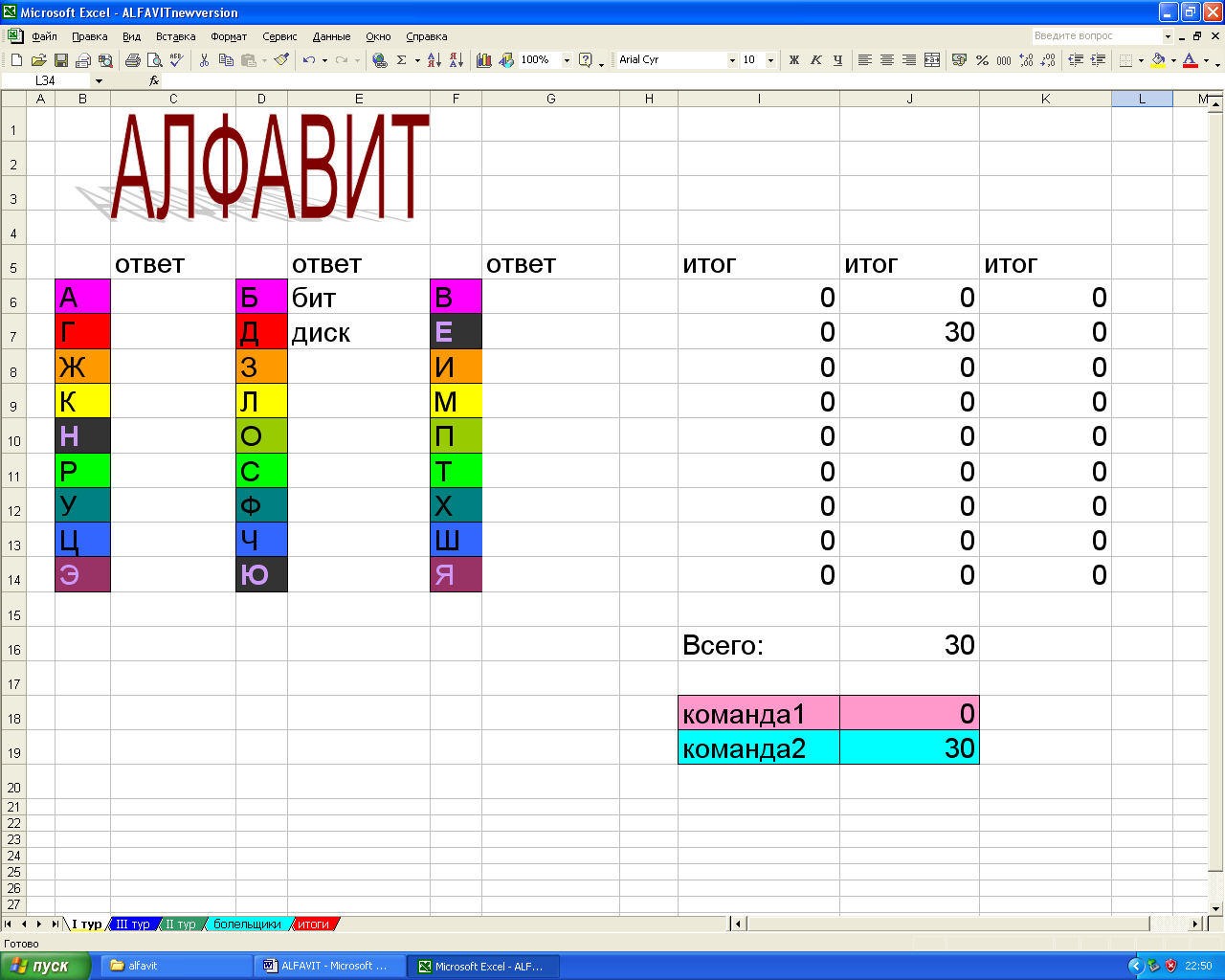 - Проведение игры «Алфавит».
