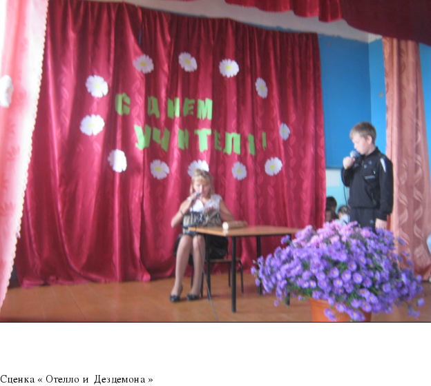 Оформление: Сцена – кашпо с цветами, плакаты : «Спасибо вам учителя!»,
