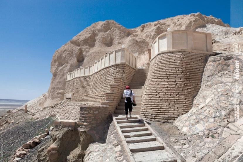 Ритуальным центром комплекса Бекет-ата является расположенная у подножия чинка скальная мечеть, к которой ведет извилистая тропа. Вернее, раньше там была тропа, когда посещения не были такими массовыми, как сейчас. Теперь вместо тропы – вырубленная в скале довольно удобная широкая лестница. Пять лет назад ее построили по решению местных властей так же, как и гостиницу для приема и размещения многочисленных паломников.