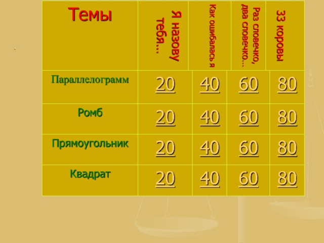 Диагонали квадрата равны, являются биссектрисами и точкой _________делятся пополам