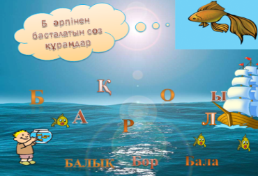 Дескриптор : | 3- тапсырма. Оқылым. «Балық аулайық» ойыны. Оқулықта берілген сөздерді буындап, тізбектеп оқыту. Оқулықта берілген сөздерді буындап, тізбектеп оқиды. Бақбақ - одуванчик –dandelion. Балық – рыба-fish 4 - тапсырма. Топтық жұмыс. Автормен таныстыру. Қайранбай Жұмабай Қожақынұлы (1948 ж. т.) — педагог, баспагер, жазушы. Алматы облысы, Ұйғыр ауданында дүниеге келген. -Бүгін біз осы кісінің «Бор неден жасалады ?» әңгімесін оқимыз . Балалар сендер білесіңдер ма ? Бор неден жасалады ? Ондай болса мені мұқият тыңдаңдар " Бор неден жасалады ? " мәтінін мәнерлеп оқу. Бор — түсі ақ, біркелкі ұсақ түйірлі кальций карбонатынан құралған жұмсақ шөгінді жыныс. 1-топ. Рольге бөлініп оқу. 2-топ. Сахналық қойылым қою. 3-топ. Берілген сұрақтарға жауап береді. Берілген тапсырмаларды орындайды. | Оқулықпен жұмыс