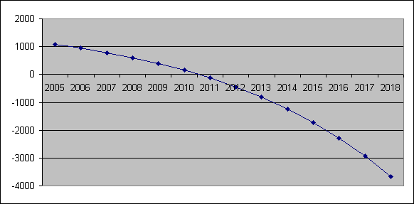 Запас рыбы в пруду оценен в 1200 тонн. Ежегодный прирост рыбы составляет 15%. Ежегодный план отлова – 300 тонн. Наименьший запас рыбы, ниже которого запас уже не восстанавливается, — 400 тонн. Постройте таблицу, рассчитывающую количество рыбы в пруду на 15 лет. Определите, начиная с какого момента невозможно выполнить заданный план отлова. Постройте график изменения количества рыбы в пруду по годам.
