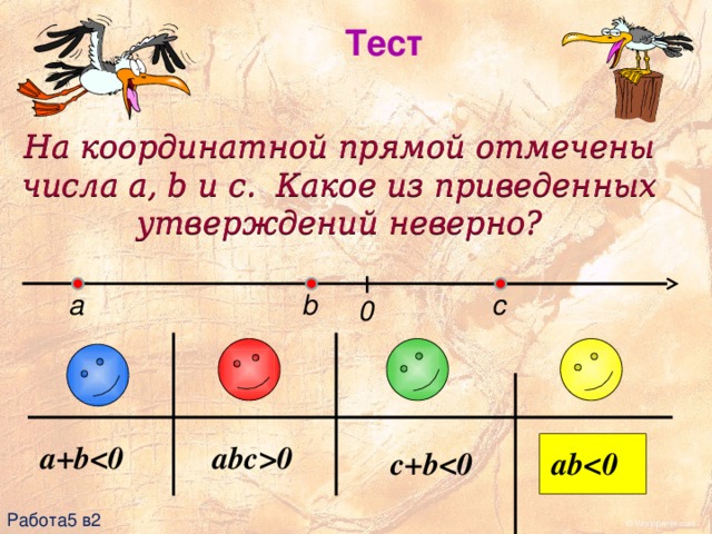 На координатной прямой отмечены числа a, b и c. Какое из приведенных утверждений неверно?