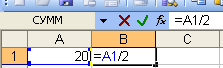 | 1 | 5 | 5 | =B1/A2 |