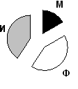 №15 На диаграмме показано количество призеров олимпиады по информатике (И), математике (М), физике (Ф) в трех городах России.