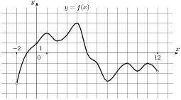 В8. На рисунке изображен график функции y=f(x), определенной на интервале (−2; 12). Найдите сумму точек экстремума функции f(x).
