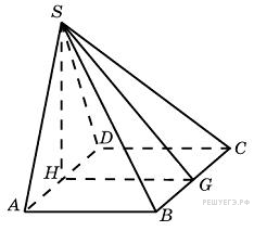 B11. Основанием пирамиды служит прямоугольник, одна боковая грань перпендикулярна плоскости основания, а три другие боковые грани наклонены к плоскости основания под углом 60°. Высота пирамиды равна 6. Найдите объем пирамиды.