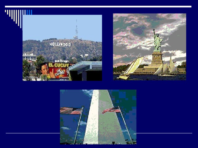 Hollywood – the centre of the US film industry. In 1913 the first film was made there. The biggest film companies are here: MGM, Paramount, 20 th century Fox, Columbia Pictures, Warner Bros.