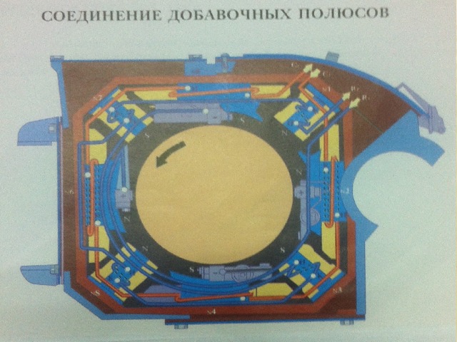Магнитная система тягового электродвигателя ЭД-118А магнитная система-элемент магнитопровода и конструктивный каркас тэд-состоит из остова, моноблоков главных и добавочных полюсов, межкатушечных соединений, выводных проводов и кронштейнов для крепления щеткодержателей. Главный полюс