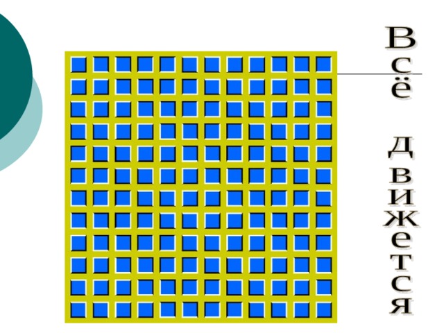 Если и дальше продолжать смотреть на крест, то вскоре все лиловые кружки исчезнут, останется только бегущий зелёный...