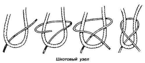 Что делать, если нам нужна одна длинная веревка, а у нас есть лишь куски веревок разной толщины? Для этого нам понадобится шкотовый узел. Он подходит для постоянных нагрузок, т.е. при отпускании может развязываться.