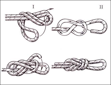 Туристские узлы: проводник, швейцарский проводник, восьмерка