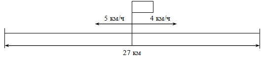 | – Из поселка вышли одновременно два пешехода и пошли в противоположных направлениях. Средняя скорость одного пешехода 5 км/ч, другого – 4 км/ч. На каком расстоянии друг от друга будут пешеходы через 3 часа?