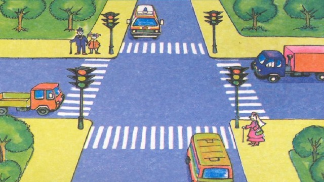а) юл уртасыннан; б) машина юлының кырыеннан,машина хәрәкәтенә каршы; в) тыкырыктан.
