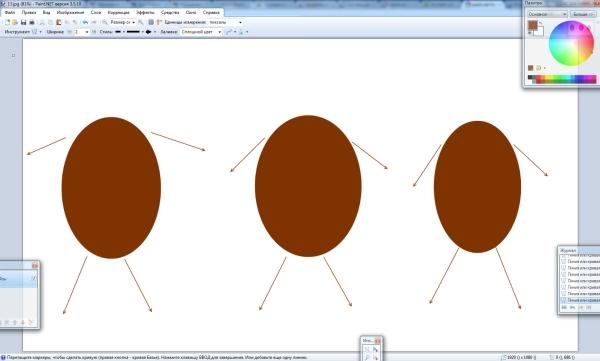 7. Теперь головы. Чтобы они получилась круглой, а не овальной, в paint.net -е предусмотрен специальный фокус: