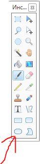 3. Теперь приступим к самому рисованию медведей. Для этого нам нужно выбрать инструмент. Чтобы его выбрать мы должны использовать панель «Инструменты», нажмите на значок, показанный стрелочкой: