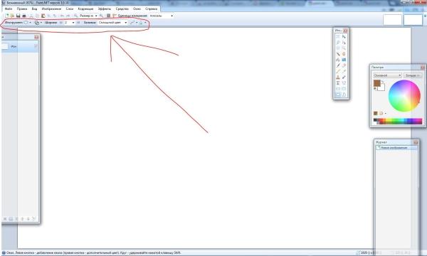 2. Перед нами откроется белое полотно. Тут мы и будем рисовать. Но сначала нужно выбрать цвет! Для этого мы должны использовать «Палитру цветов»: