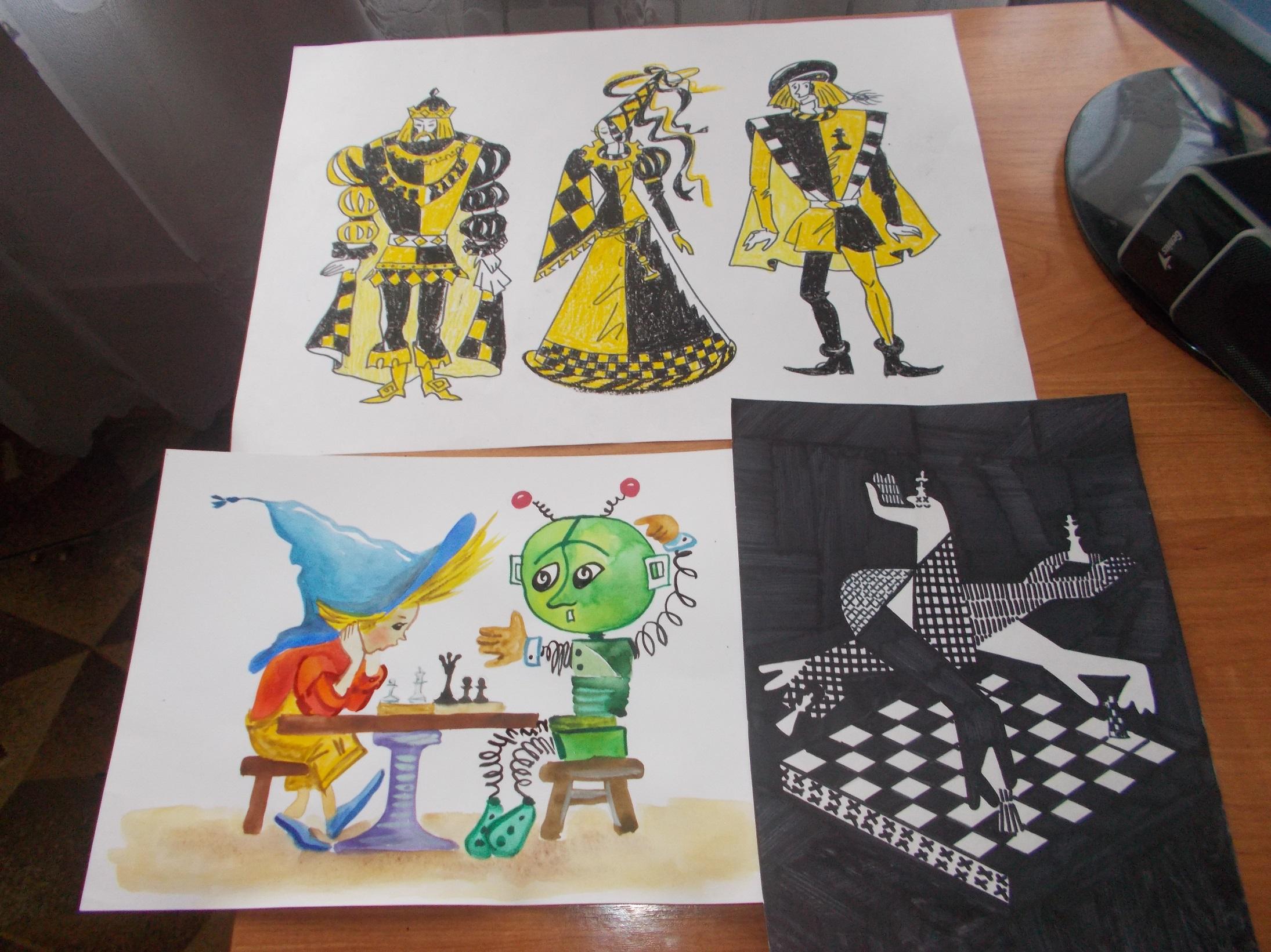 Работы выполнены на конкурс, объявленный районной библиотекой к турниру по шахматам.