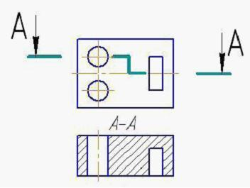 21. Ломаный разрез, выполненный двумя секущими плоскостями, изображен на рисунке: