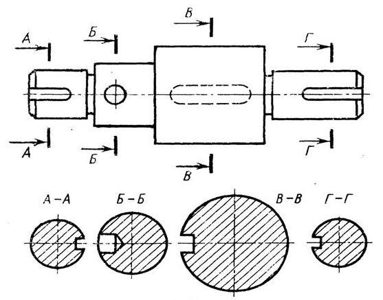 47. На рисунке даны четыре сечения детали. Установите, какие из этих сечений выполнены правильно.