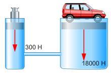 На большой поршень действует сила 18000 Н, на малый поршень действует сила 300 Н. Система находится в равновесии. Какой выигрыш в силе даёт гидравлическая машина? Ответ записать числом.