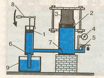 Измениться ли давление, производимое с помощью данного устройства, если вместо масла, в пресс, залить воду?