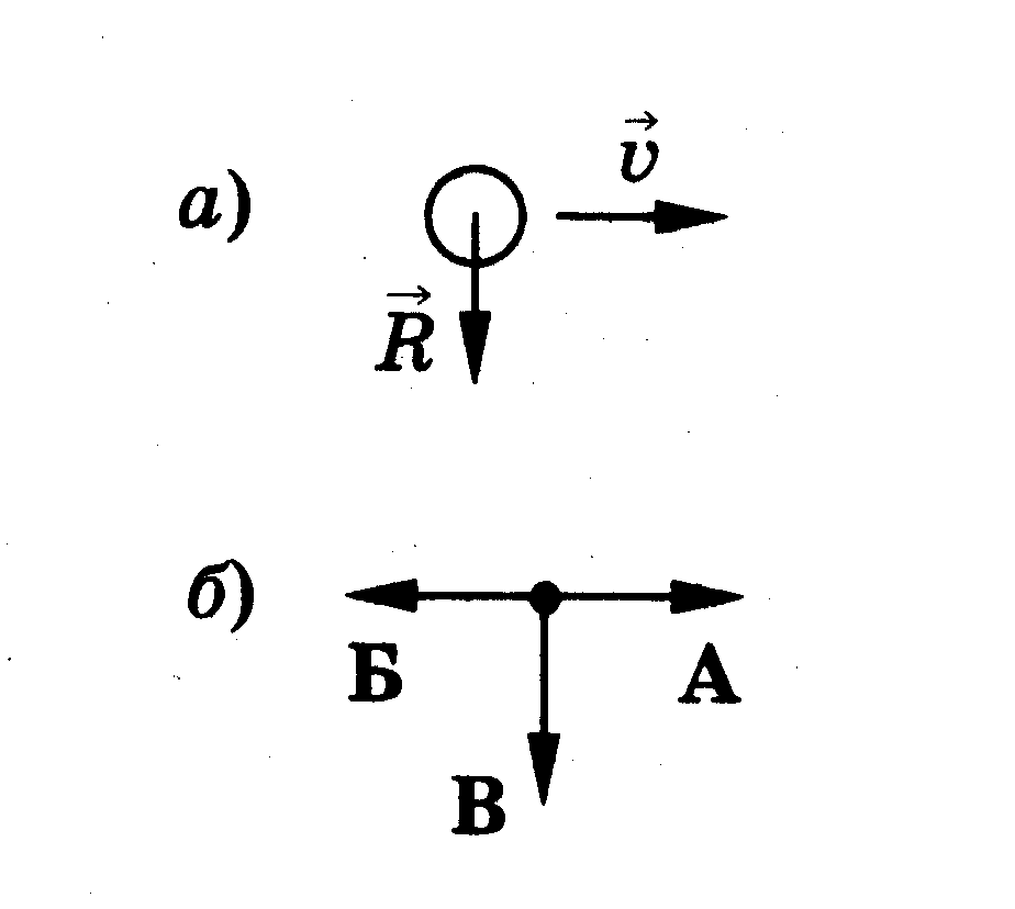 3. На мяч, движущийся со скоростью v, действует несколько сил, их равнодействующая R изображена на рисунке а. Какой вектор на рисунке б, указывает направление вектора ускорения?